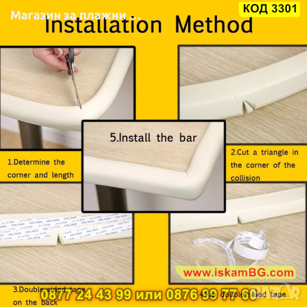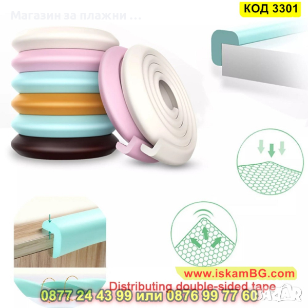 2 метра мека предпазна лента за ъгли с двойнзалепваща лепенка