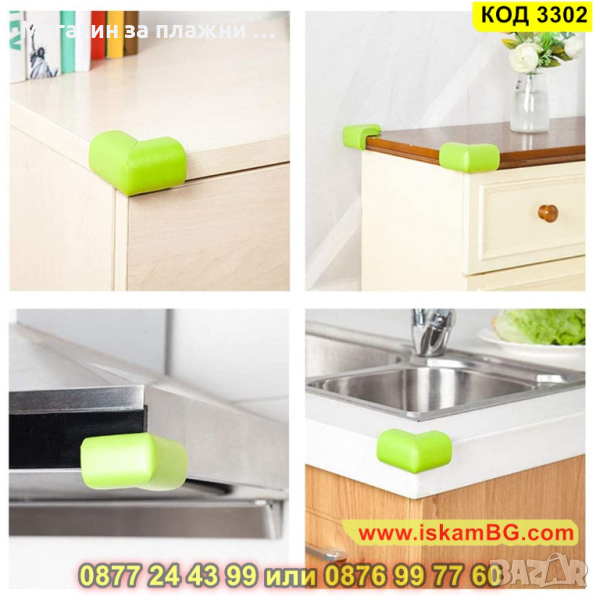 Бебешки и детски предпазители, оптимална защита за ъгли и ръбове на маси, шкафове, работни плотове, друга мебелировка и уреди. Протекторите са изработени от специална, ефективно поглъщаща ударите мека гума. Изключително лесни за монтаж благодарение на приложената самозалепваща лента. С тях домът Ви ще се превърне в едно чудесно и безопасно място за Вашето дете!
