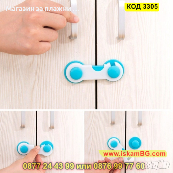 Предпазителите осигуряват надеждна защита и безопасна домашна среда, предотвратявайки отварянето на шкафове, чекмеджета, тоалетки и други. Те предоставят лесен монтаж, без пробиване, посредством специална двойно лепяща лента, която не оставя следи след тяхното отстраняване.