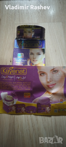 Премахва тъмни кръгове, акне, бръчки, лунички и други признаци на стареене. Овлажнява кожата, прави кожата мека и млада. Защитава кожата от ултравиолетовите слънчеви лъчи(60 SPF слънзезащитен фактор).Как да използвам:Преди сън измийте лицето си със сапун за красота Sandal(Сандал) и внимателно го подсушете, след което нанесете крем за красота Kayenat(Кайнат) и масажирайте нежно. На сутринта измийте лицето си със сапун Sandal (Сандал).Няколкодневна редовна употреба на Kayenat(Кайнат) Бюти крем ще доведе до невероятен резултат, като направи кожата ви без акне, свежа и красива. Продължете да използвате крема до постигане на желаните резултати. След това използвайте два пъти седмично, за да предпазите кожата си от слънчева светлина, прах и замърсяване.Забележка:Хората с кожни алергии се съветват да се консултират с лекаря си преди да използват крем.Цена 10 лв и 90 стотинки за брой. Доставките се извършват чрез Спиди или Еконт, с опция "преглед". Куриерската услуга е за сметка на клиента. Моля, разгледайте и другите ни обяви.