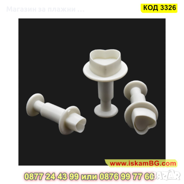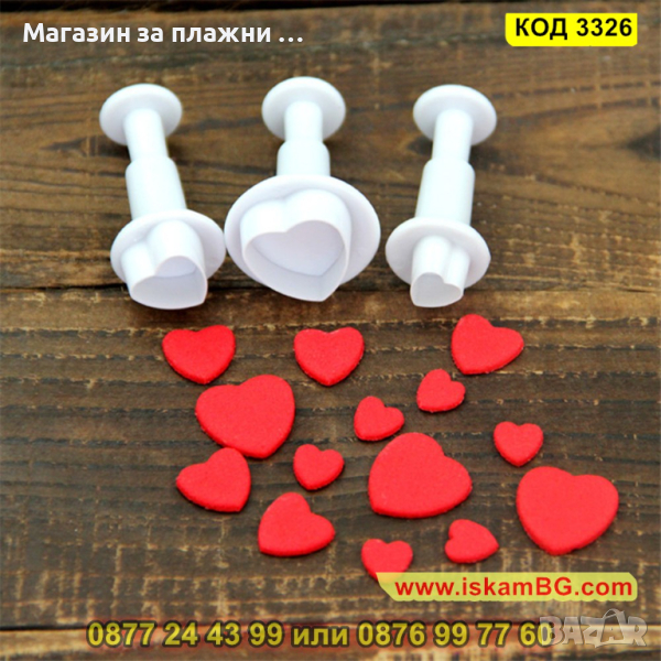 Резци с бутало с форма на сърце 3 броя различни размера