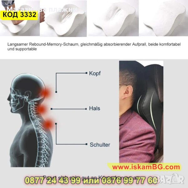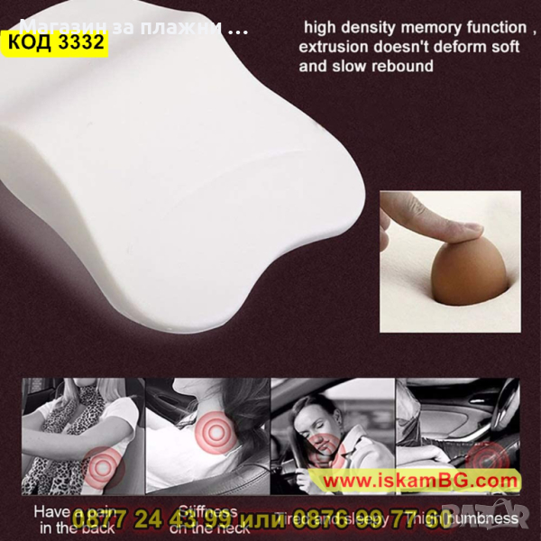 1 брой мемори възглавница за врат ИЛИ за кръст (СПОРЕД ИЗБРАНАТА ОТ ВАС ОПЦИЯ)
