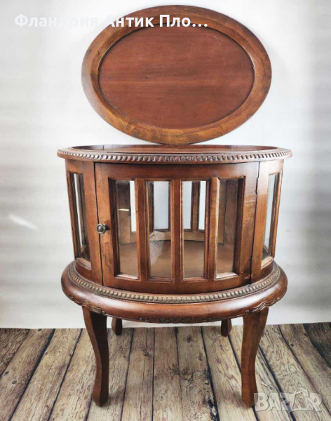 Овалната форма на шкафа му придава уникален и изящен вид. Този нестандартен дизайн създава интересен фокус във вашия интериор и се отличава със своята оригиналност. Извитите крачета на шкафа допълват конструкцията му, придават лекота и изграждат невероятен стил.