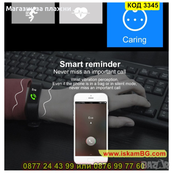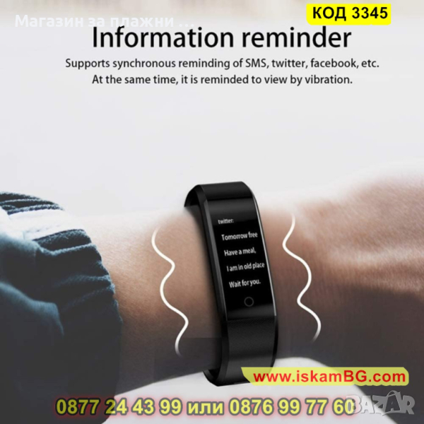 * Анти-загуба - гривната ще започне да вибрира, когато сте на 5 метра от телефона