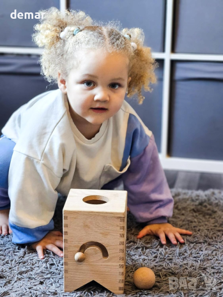 Тази сензорна играчка на Монтесори е перфектно допълнение към колекцията за ранно обучение на вашето бебе, предлагайки уникален начин за изследване на постоянството на обекта и забавление с часове на мозъчна атака. Идеален за бебета на възраст от 6 до 12 месеца, той стои редом с традиционните дървени играчки за сортиране, кубчета за активност и сортиращи форми като полезен инструмент за ранно развитие. Той не само осигурява забавление, но също така подобрява способностите за решаване на проблеми, координацията око-ръка и логическите и аналитични умения, подобно на класическо кубче за занимания за малко дете. Отличителна черта е добавеният подвижен лост, предназначен да задълбочи любопитството и разбирането на механизмите, като по този начин ускорява ученето. Създадена за безопасност и в съответствие със стандартите на ЕС, тази играчка се отличава с лека дървена конструкция с гладки ръбове, идеална за малки ръчички. Като обмислен подарък, той предлага образователна игра, която поддържа етапи на развитие, което го прави идеален подарък както за момичета, така и за момчета на възраст 6 месеца и повече.