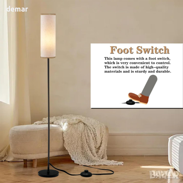 подова лампа, която се вписва безпроблемно във всеки декор от съвременен до ретро, от средата на века или индустриален. Изработена с ленен абажур и елегантен черен железен стълб, тази лампа не само осветява вашето пространство, но и добавя нотка стил. Той е съвместим с крушки E27, което ви позволява да избирате между дневна бяла светлина за дейности като четене и топло бяло за релаксираща атмосфера. Проектиран за удобство, той разполага с крачен превключвател за лесна работа и е съвместим със стенни превключватели и интелигентни контакти, което гарантира лесна употреба. Инсталирането е лесно, с прост процес на сглобяване, който не изисква инструменти, и абажур, който се закрепва с велкро. Тази стояща лампа със своя ленен абажур и стабилна основа е перфектно допълнение към всеки модерен дом, предлагайки както функционалност, така и шикозен дизайнерски елемент.