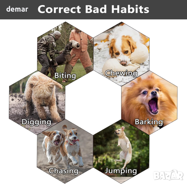 Усъвършенстваният и безопасен нашийник за обучение на кучета с дистанционно осигурява персонализирано и хуманно изживяване при обучение, включващ три режима без удар: звук, вибрация и пръскане (нива 1-6), плюс бутон за пръскане на подсилване. Имайте предвид, спреят с цитронела се продава отделно. Проектиран за удобство, той предлага дистанционен обхват от 1000 фута, идеален за тренировки на открито и способен да работи през стени, със защитно заключване за предотвратяване на случайно активиране. Регулируемият найлонов дизайн на нашийника пасва удобно на кучета с тегло 10-130 паунда с размер на врата 25~60 см. Той е оборудван с IPX7 водоустойчив приемник, позволяващ приключенски дейности на открито, и може да се похвали с удължен живот на батерията - до 15 дни за приемника и над шест месеца за дистанционното. Моля, ограничете носенето на яка до 12 часа на ден. Пакетът включва ясни инструкции и разполага с дисплей с висока разделителна способност за лесна работа.
