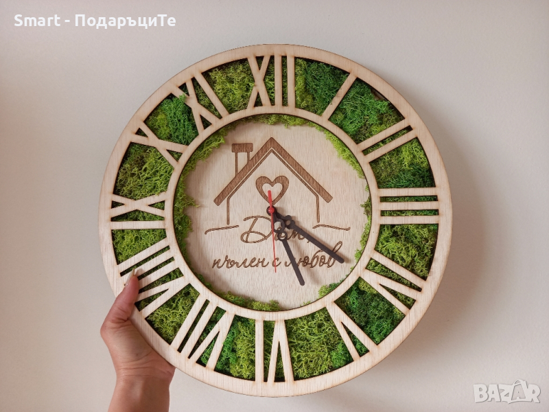 Персонализиран часовник със скандинавски мъх 40 см. → Обява 44976597