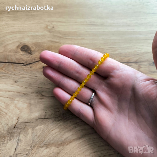 Ръчно изработена гривна от полускъпоценни камъни жълт Авантюрин 4 мм.