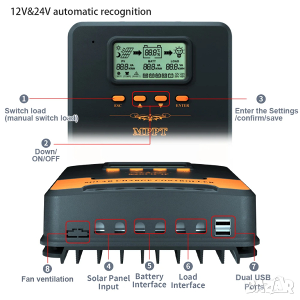 20A/40A/60A MPPT соларно зарядно - соларен контролер 12/24 v