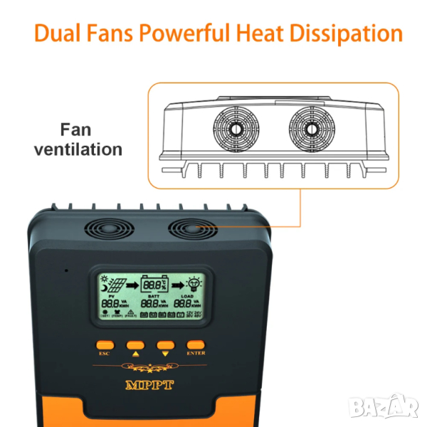 -2 броя охлаждащи вентилатора само на 40A/60A моделите