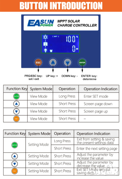 ●【ПЪЛНА ЗАЩИТА】Защити от късо съединение/свръхток/обратна полярност и др.; Много детайлен LCD екран и 4 бутона правят този соларен контролер много лесен за използване. Бърза сервизна поддръжка и прости и подробни инструкции за окабеляване.