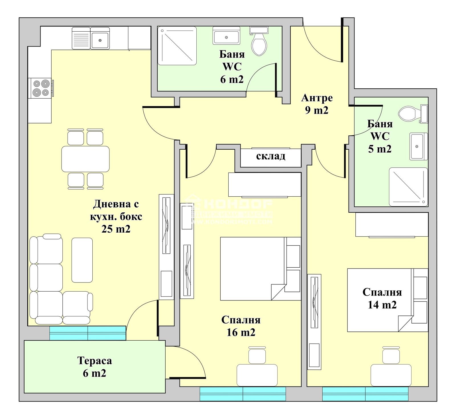 Оферта 56713: Нова луксозна сграда, намираща се на чудесно място в район 'Южен', съчетаваща в себе си модерната архитектура с високо качество на строителство и усещането за уют и спокойствие. Намира се в най-атрактивния и предпочитан за живеене и инвестиция квартал на Пловдив Кючук Париж, с отлична локация, в близост до училища, детски градини и всички необходими комуникации за нуждите на модерния човек. Жилището, което ви предлагаме е с ЮЖНО изложение, състои се от дневна с трапезария и кухненски бокс, две самостоятелни спални, две санитарни помещения, склад, входно антре и тераса. Степен на завършеност: стени и тавани - шпакловка, под - циментова замазка, балкони - гранитогрес, мокри помещения-замазка и мазилка, парапети по балкони - стъклени, дограма - PVC с многокамерен профил, врати - външна блиндирана, хидравличен асансьор, луксозни общи части. Свободни партерни и подземни гаражи и паркоместа. Възможност за разсрочено плащане в рамките на строителството или закупуване чрез Банков Кредит!