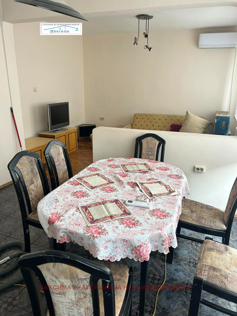 Апартамента е разположен в малка кооперация, в близост да Медицинският университет и Музикалното учелище, на тихо и спокойно място. Обзаведено и оборудвано с всичко необходимо. Състои се от просторна дневна с трапезария и кухня, две спални самостоятелни , голяма баня с тоалетна и две тераси. Ново обзавеждане за спалнята и климатици. Централен ТЕЦ и топла вода.