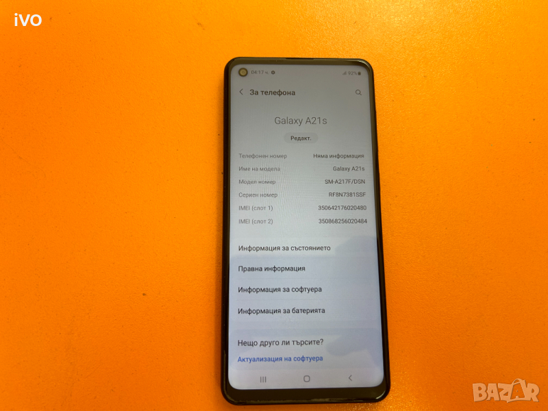 Смартфонът е супер. Няма дефекти и проблеми. Батерията държи 2-3 дена, 48 мегапиксела камера, 6,5 инча дисплей, 32гб, 3гб рам, андроид 12