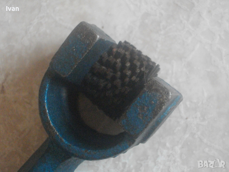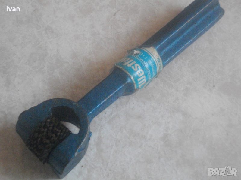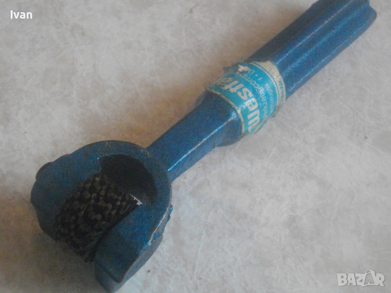 Инструмента е за почистване/зачистване/заточване на камъни - дискове на шмиргели и камъни за заточване, всякаква абразивна зърненост. Нов ръчен шлифовъчен диск размер ф25мм,професионален модел на Уестфелия.Немско оригинално производство. Марка и модел-Westfelia D5800.Инструмента се ползва за професионално шлайфане ръчно коригиране и огрубяване на износени лепкави камъни за шлайфане.Диска е високо качествено професионално производство от специална закалена стомана.От карбид е, с U образни зъби,специално изработени от висококачесвена закалена стомана с минимално износване на точилото.Ролките са взаимно заменяеми и се ползват до пълно износване.Ролката е здраво захваната за метална основа.Цялостна дължина на инструмента-21см. Инструмента е в отлично техническо състояние.