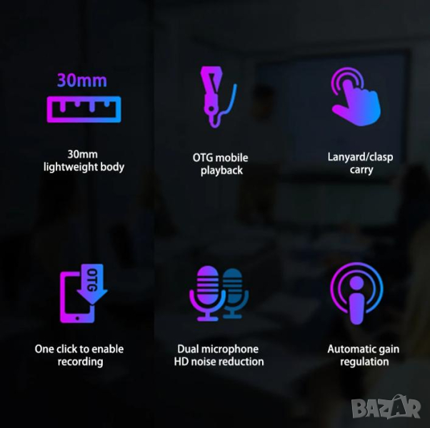 Чрез него може да се записват при нужда всякакви важни лични или делови разговори, бизнес срещи, собствени гласови бележки, лекции, интервюта и др. Това ще ви помогне за набавяне на неоспорими доказателства в бъдещи спорове или опити за опровергаване на изказани думи, мнения, съвети или твърдения.