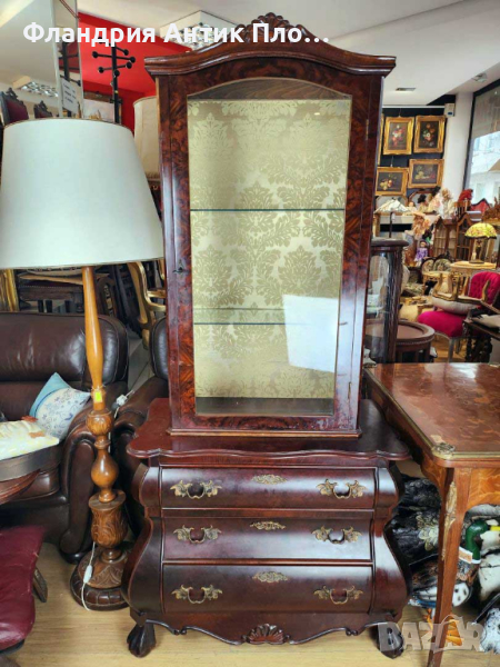Тази шкаф-витрина представлява истинско съкровище с уникален дизайн и изработка, която ще добави класа и индивидуалност на вашия дом. Благодарим ви, че избрахте нашия магазин за вашите антикварни находки!