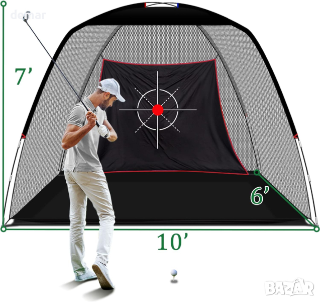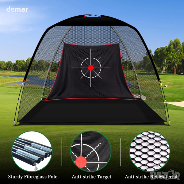 KAIDIDA Golf Sports Net, изработена от издръжлив найлонов материал и подсилена със стъклени влакна за повишена здравина и стабилност, способна да абсорбира мощни удари, като същевременно поддържа формата си. Придружен от еластична кърпа за мишена, проектирана да издържа на повтарящи се удари от топки за голф. Иновативното използване на стъклени влакна в конструкцията на рамката гарантира устойчивост на ръжда за дълготрайна работа. Лесен за инсталиране и деинсталиране, спестява ценно време и увеличава максимално изживяването ви при игра на голф.