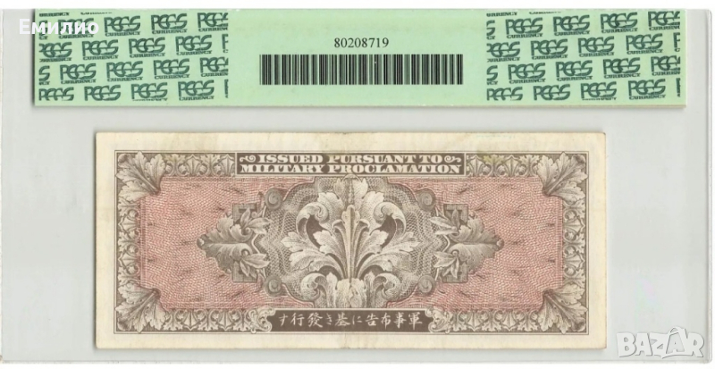 Продавам Сертифицирана Банкнота от Япония. 20 Йени 1945 год. Военни Банкноти от Втората Световна Война. Сертифицирана от PSGS с оценка 53