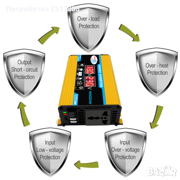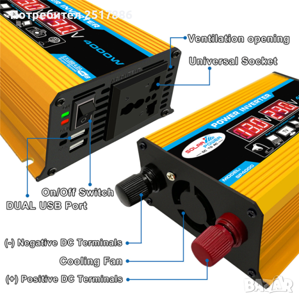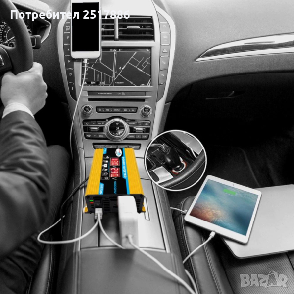 Инвертор на панпрежение от 12В на 220В подходящ за автомобили, камиони, кемпери, каравани и други стационарни и мобилни устройства. Зараеждайте си лаптопа, осигурете си захранване за телевизори др. без да имате нужда от захранваща мрежа.