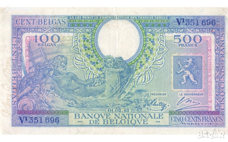 Продавам Рядка Банкнота от Белгия. 500 Франка от 1943 год.