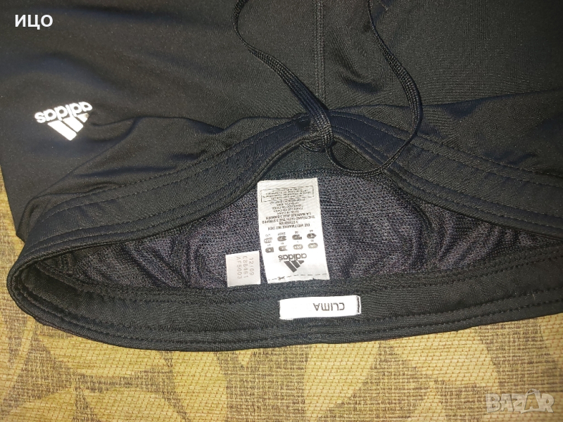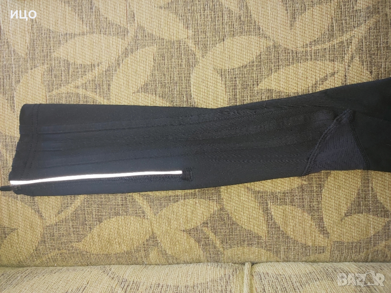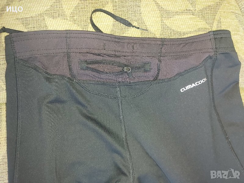 Женски клин Adidas- CLIMA-COOL. Със връзки и цип на крачолите и малък джоб на кръста. Три черни ленти на глезените. На свивките има мрежеста материя. Без скъсано. Размер Usa L. Цена 15лв.