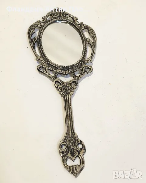 Позволете нии да ви представим дамското ръчно огледало с дръжка, изработено от плътен месинг с изящни орнаменти.