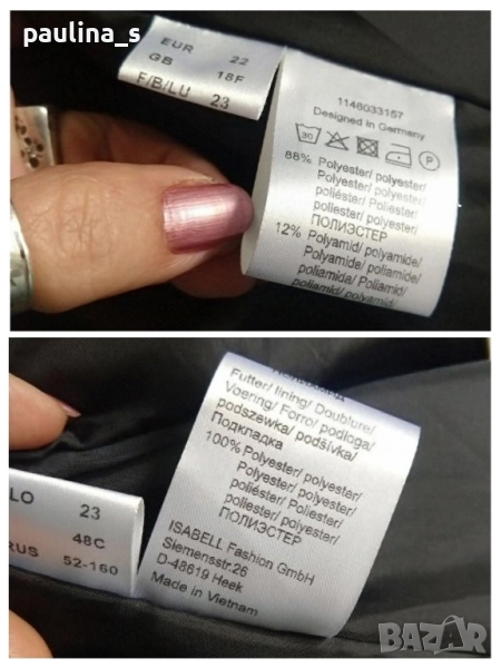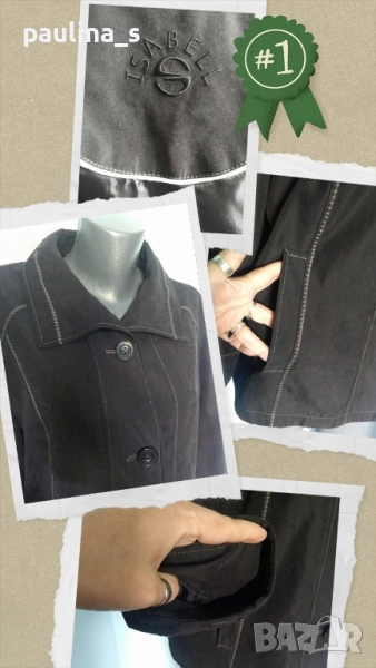 2️⃣. XL / 2XL - Стилно Дизайнерско манто, сако или парка "Isabell Kristensen". Цената е крайна, без пазарлъци 29,99лв / 15 евро. Стилно, немачкаемо и много елегантно късо манто, яке или парка с хастар, от луксозен микрофибър с транслуцентен ефект. Маркиращите тегели са контрастни, за елегантно излъчване. Всичко е съобразено с размера, стилна, удобна и изключително изискана дреха. Една бройка, като нова, без дефекти и етикет, само ефекти.