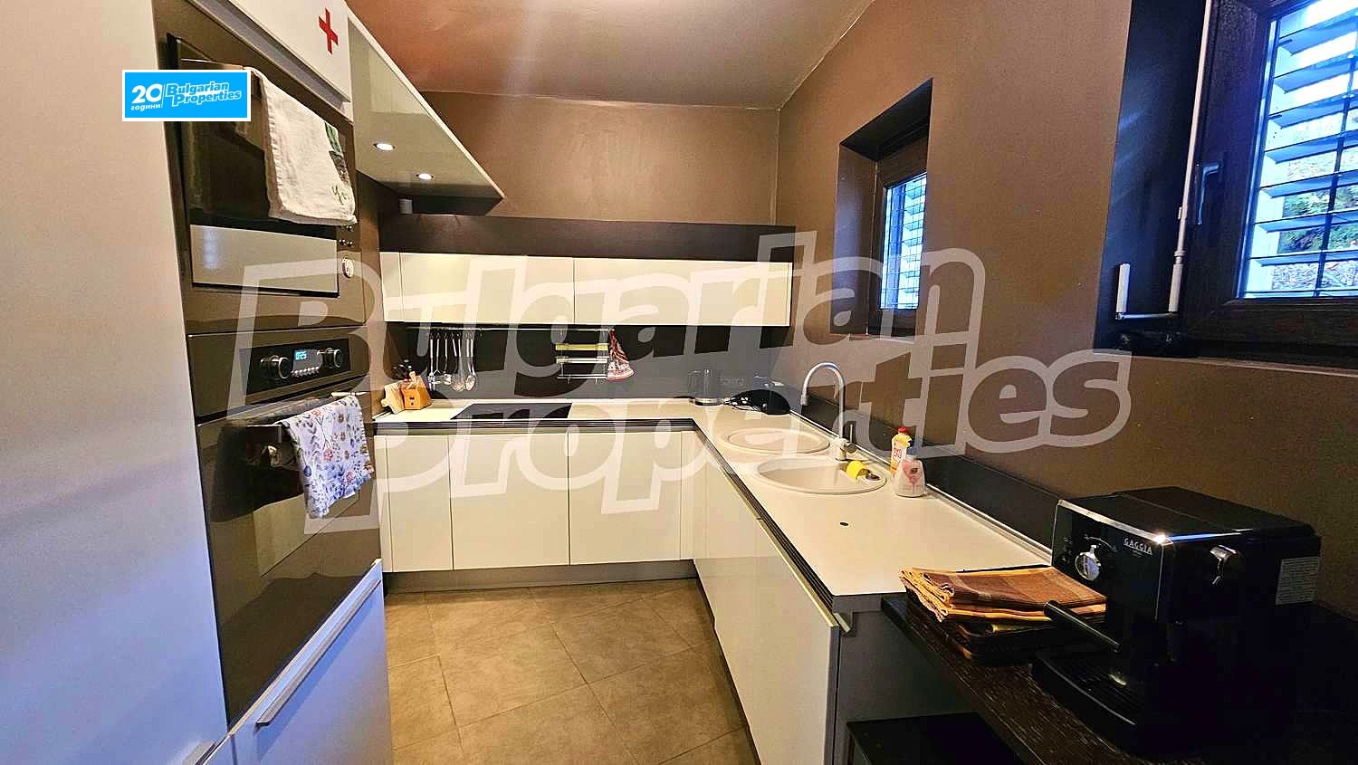 Двуетажна къща изцяло завършена с качествени материали - прозорци дървен стъклопакет, стени - латекс, подове - гранитогрес и мокет; напълно обзаведена. Общата площ възлиза на 290 кв.м: