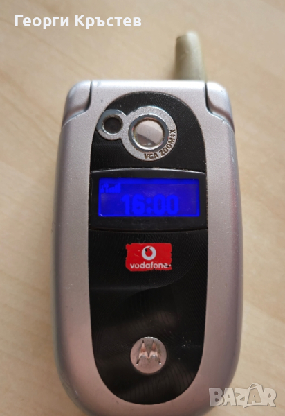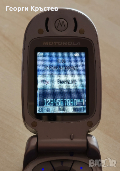 V550 - телефона се включва, зарежда си батерията, клавиатура и камера са ОК, микрофона и слушалката не мога да ги пробвам, защото трудно намира обхват, намира, и после губи, може би е и заради антената, не може да се завие и пада, проблем с резбата, добър външен вид, батерията е неизвестна, на зарядно изписва, че не се зарежда, може би е проблемна, без зарядно.