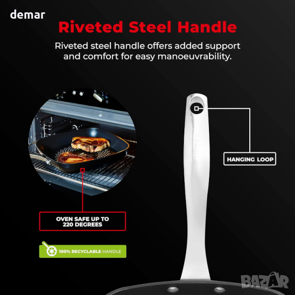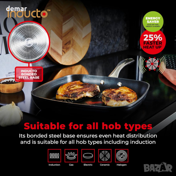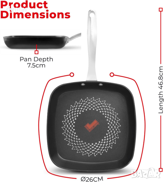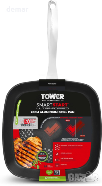 Tower T900307 SmartStart 26 см алуминиев грил тиган с незалепващо покритие Aeroglide, индукционен