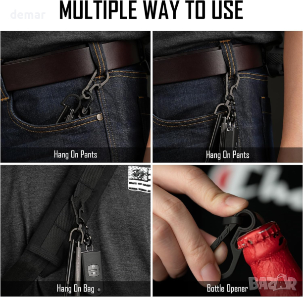 KeyUnity KM14BK 3 в 1 Ключодържател с D пръстен, титаниева отварачка за бутилки, подарък за мъже