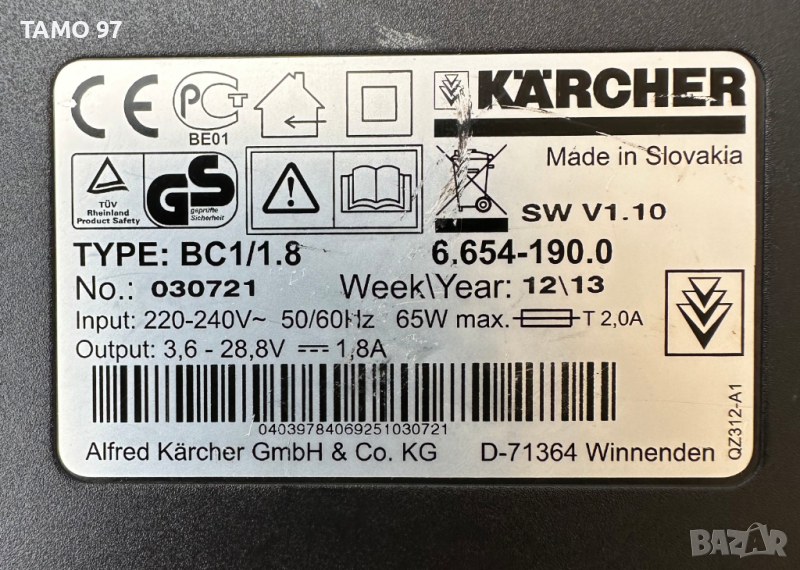 Продавам комбинирано зарядно на Керхер за батерии от 3,6V до 28,8V в отлично състояние и работи без забележки, оригинално словашко производство е и внос от Франция. Пращаме с опция преглед и тест с куриерска фирма еконт може и лично предаване за гр. Шумен.