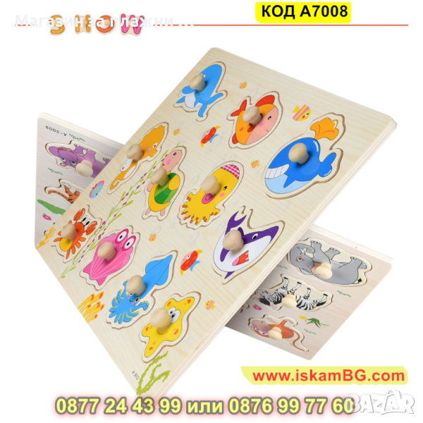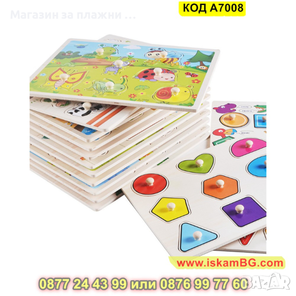 Дървен пъзел Буболечки с дръжки и размери 30х22,5 см. - модел A7008 - КОД A7008 → Обява 44996877