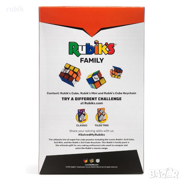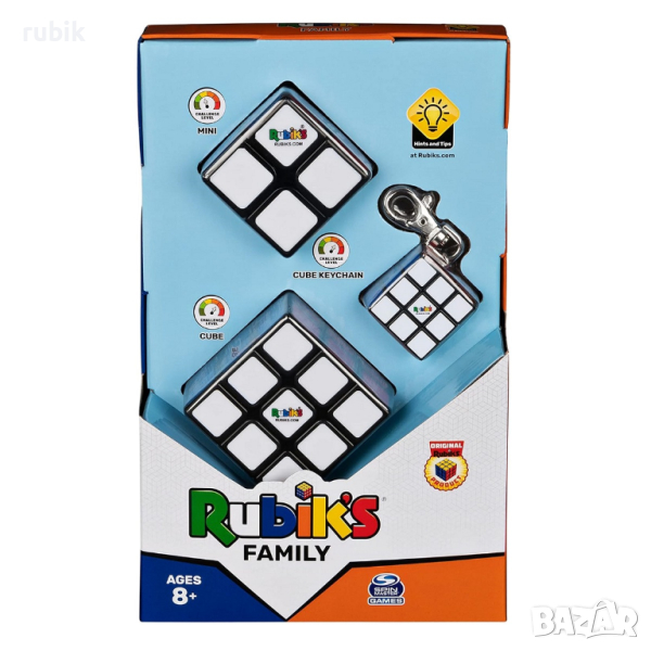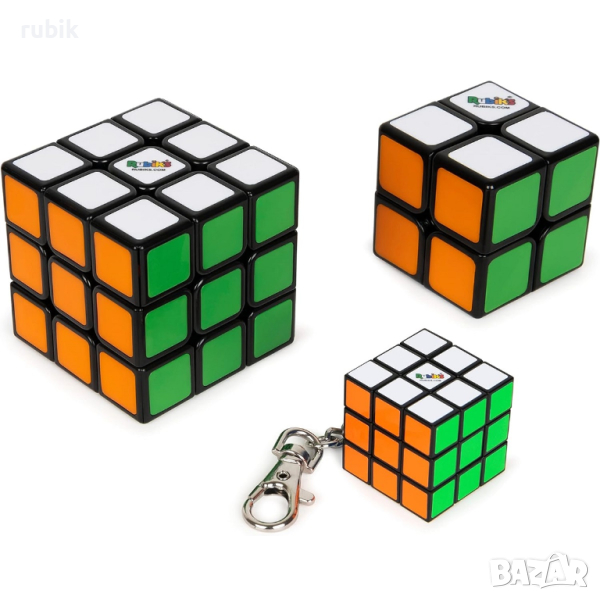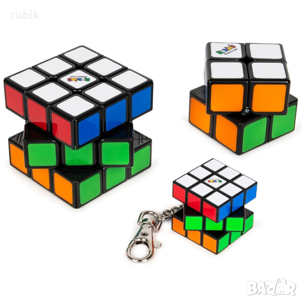 - Комплект от 3 броя оригинални пъзели на Рубик - Rubik's Cube 2x2x2, Rubik's Cube 3x3x3 и Rubik's Keyring 3x3x3