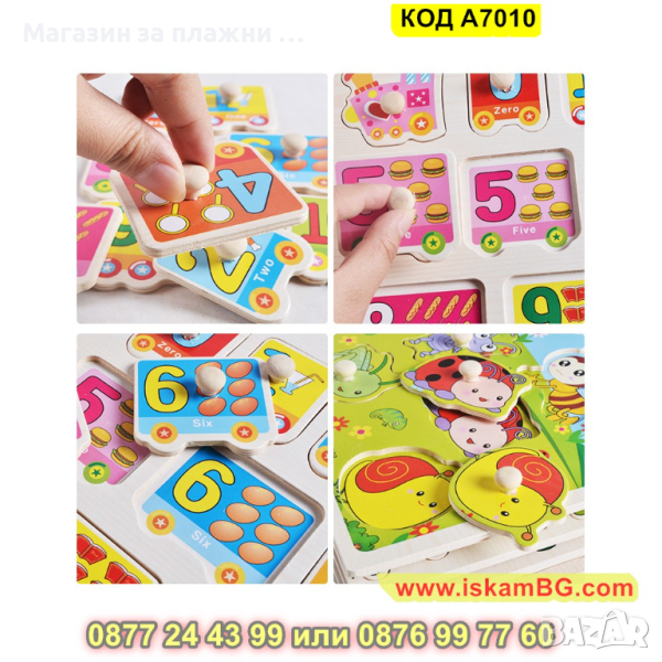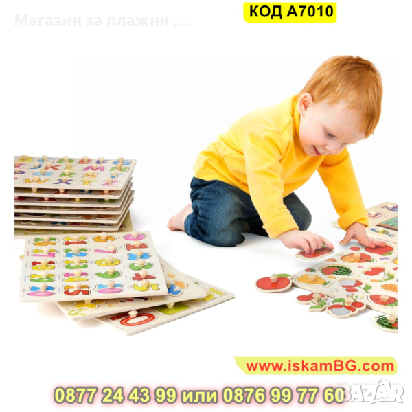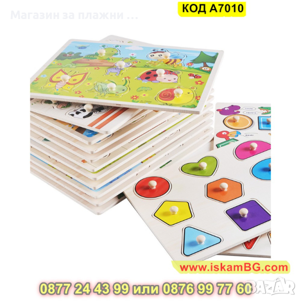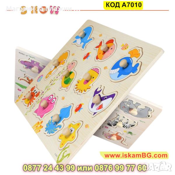 Дървен пъзел с Плодове и дръжки, с размери 30х22,5 см. - модел A7010 - КОД A7010 → Обява 44996889