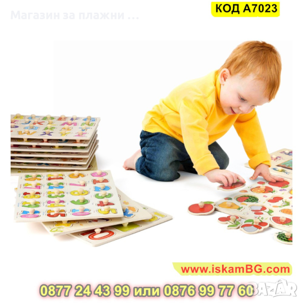 Дървен пъзел Alphabet с дръжки и размери 30х22,5 см. - модел A7023 - КОД A7023 → Обява 44997251