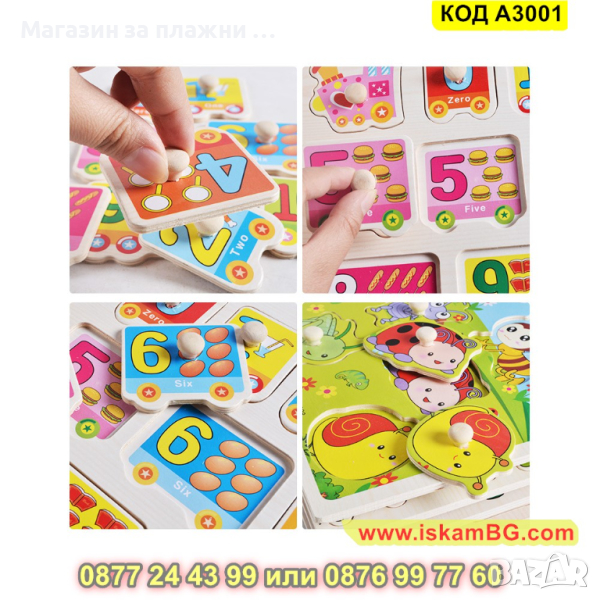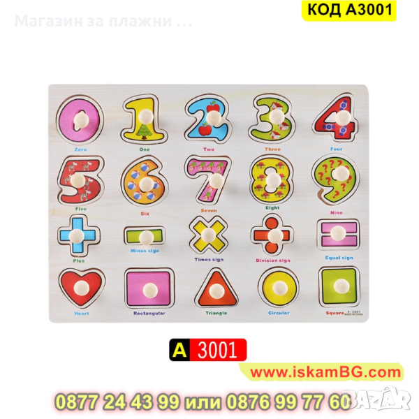 Дървен пъзел Забавна Математика с дръжки и размери 30х22,5 см. - модел A3001 - КОД A3001 → Обява 44997255