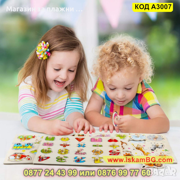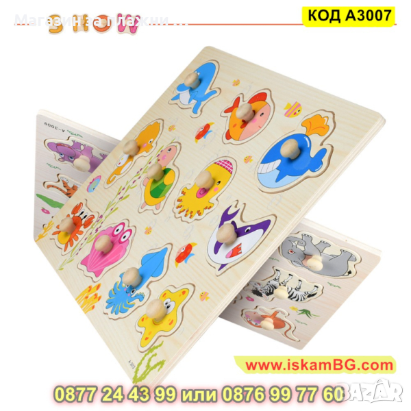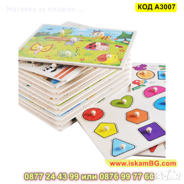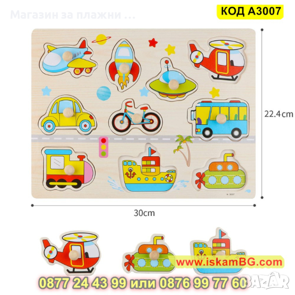 Дървен пъзел Транспортни средства с дръжки и размери 30х22,5 см. - модел A3007 - КОД A3007 → Обява 44997309
