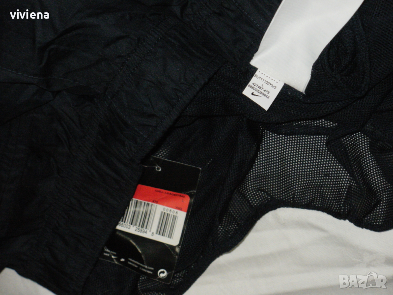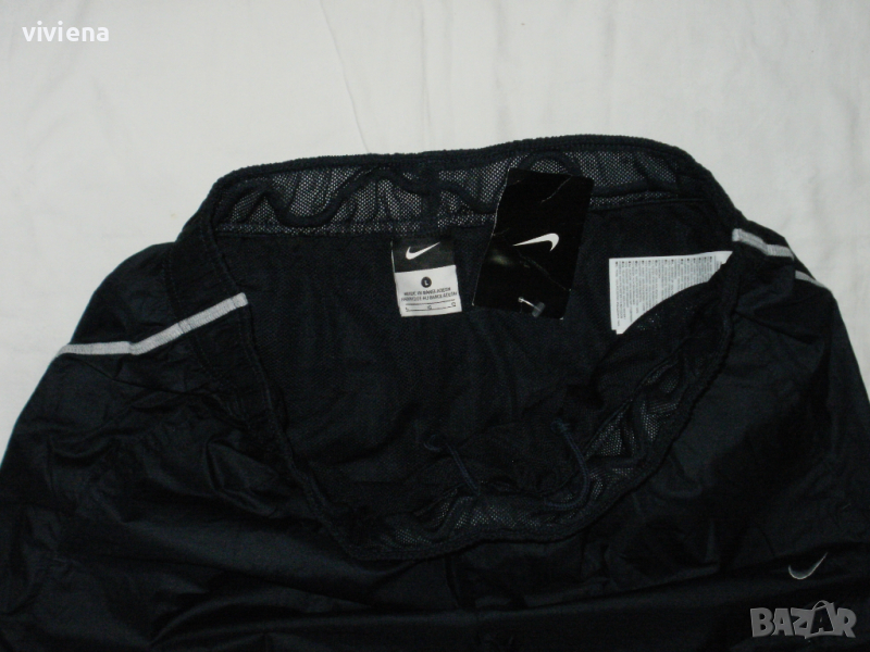 Шортите са на NIKE, оригинални нови с етикет. По номер са L. Тънка лека материя незадържаща влага, отдолу с бандаж. Цвета е тъмносиньо и сиво. Отгоре са с широк ластик и връзка. Отпред имат два джоба и един отзад с цип. Дължина-68см. Талия-42см/52см.