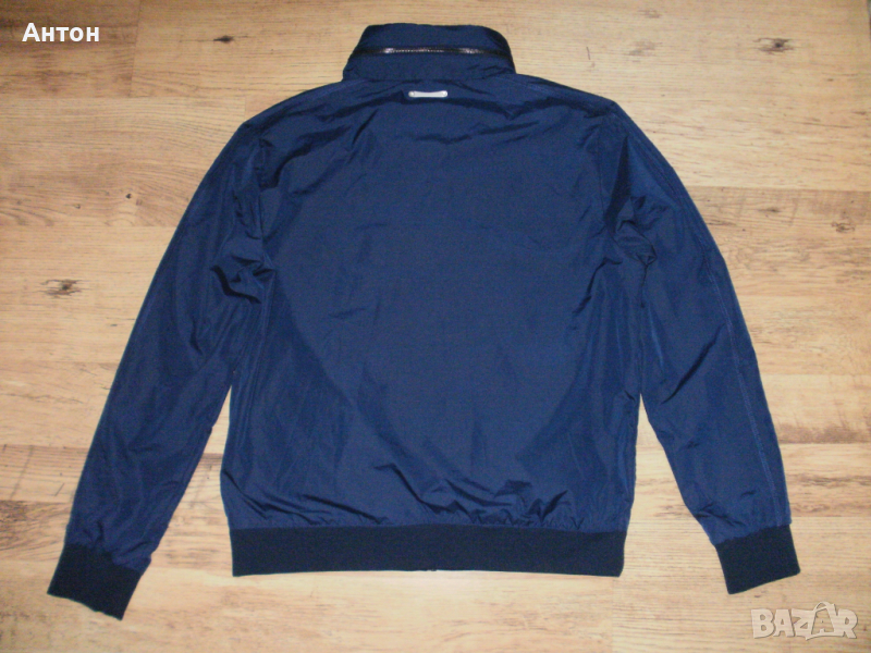 Ветровката е на G-star Raw, оригинална, обличана, без забележки, като нова. Материята не пропуска вятър. По номер е 2XL но според мен е XL. Цветовета е мастилено синьо. Подплатата е тънка на дупчици. Закопчава се с цип, отпред има два джоба. Има качулка в яката. Има лого отпред, на циповете и отзад под яката.