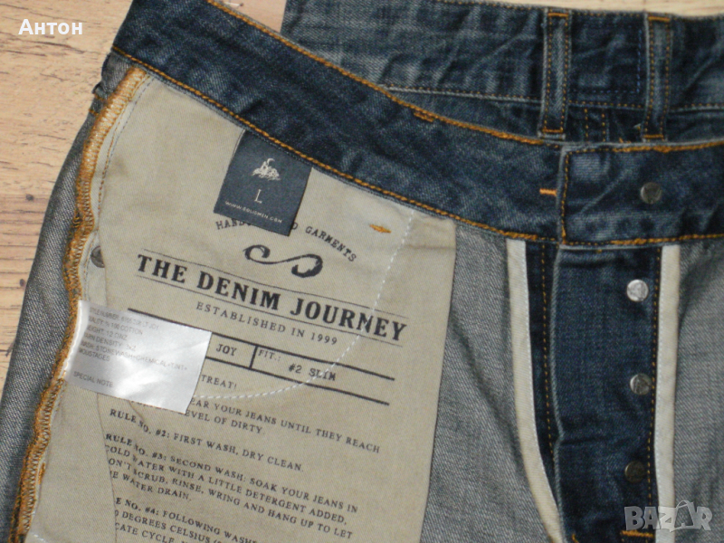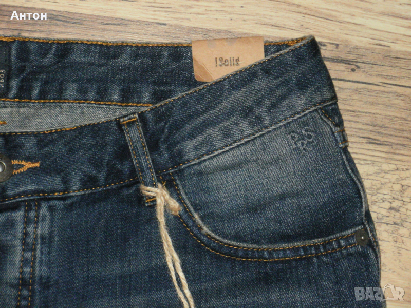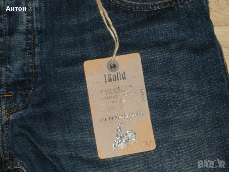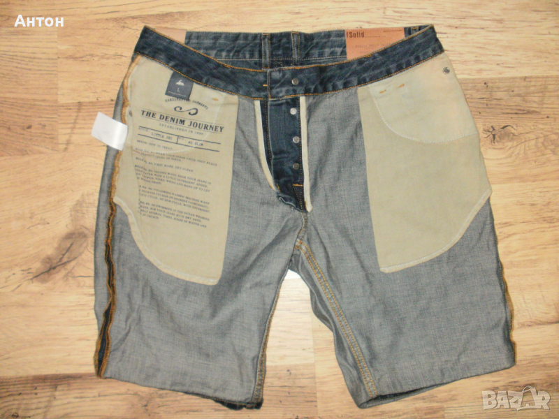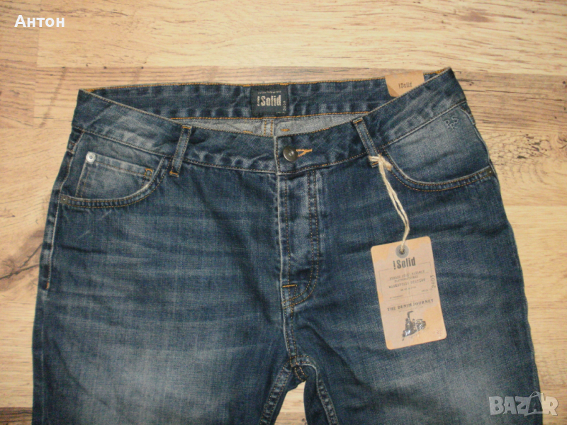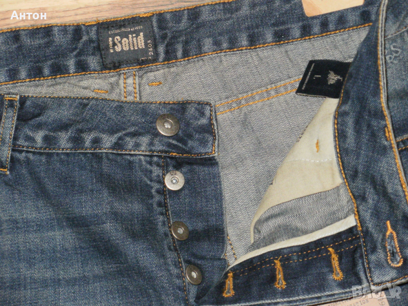 Панталоните са на !SOLID, оригинални, нови с етикет. Цвета е като на снимките. Закопчават се с копчета. Материята е тънък деним от 100% памук. По номер са L. Има лого на всички капси.