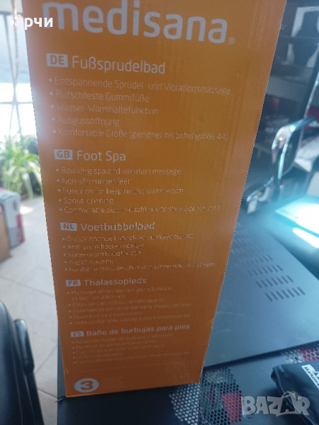вана за крака Medisana FS A80Промоции на Medisana Вана за крака FS A80ОписаниеТоплина, масаж, релакс - всичко от което се нуждаят краката Ви е тук. Благодарение на масажната СПА вана за крака FS Foot Spa на Medisana, Вие ще почувствате стъпалата си отново жизнени, отпочинали и изключително меки. Безброй водни мехурчета ще затанцуват по краката Ви, обгърнати от топлата прегръдка на водата. Всяка точка по стъпалата ще бъде активирана, болките в ставите ще намалеят, а циркулацията на кръвта - ще се увеличи. Всеки орган в тялото ще подобри работата си. Спа ваната за крака е идеална за хора, страдащи от „синдрома на студените крака”, както и за хора в постоянно движение. Функцията за поддържане топлината на водата, позволява да се наслаждавате още по-дълго на масажа. Подходяща за стъпала с размер до 44 номер.Характеристики:Мощност: 60 WПодходяща за стъпала с размер до 44 номер3 функции с 1 бутон: Масаж с мехурчета, Вибрационен масаж, Поддържане на топла водаАвтоматично включване на режим „Поддържане на топла вода”Интензивна рефлексология: успокоява болките в ставите и засилва кръвообращението, като по този начин подобрява работата на всички органи в тялотоГумени крачета против хлъзгане и за стабилностИзпускателен отвор за вода за удобство3 години гаранцияРазмери (В х Ш х Д): около 14.5 x 33 x 38 смЗахранване: 220-240 V / 50 HzТегло: 1.7 кг