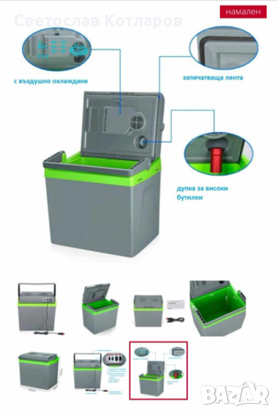 Преносима охладителна кутия с възможност за подгряване и с енергиен клас А++ захранвана от 12V контакт за автомобилна запалка, или 220V в обикновен контакт.