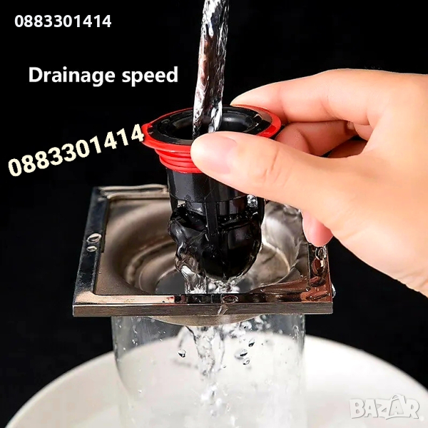 Функционалния предпазител/тапа има форма на V-чашка, която осигурява плавно оттичане и се затваря автоматично след това. Подходящ за поставяне в банята, мивката в кухнята, гаража, мокрото помещение и др.