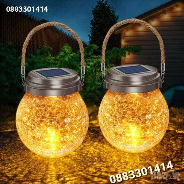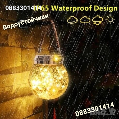 Лампата е проектирана така, че да се закача на въже, клон, кука и всъщност навсякъде, където може да се закачи. Изработена е от стъкло, което изглежда напукано стъклено кълбо. Стъклената дворна топка има вътре 20 LED крушки, ip44 водоустойчиви. Свети с уютна топла бяла светлина, която създава спокойна и романтична атмосфера.