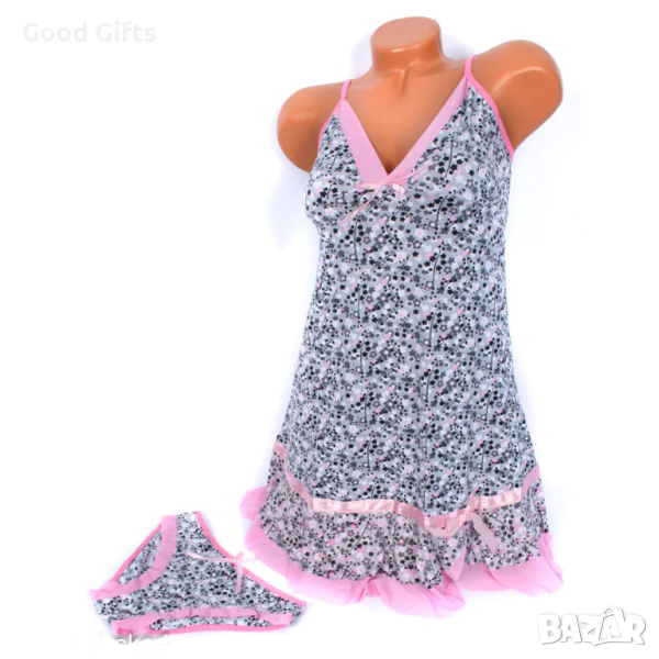 Комплекта включва горна част на нощницата и бикини, гарантирано качество, приятен допир и секси дантела