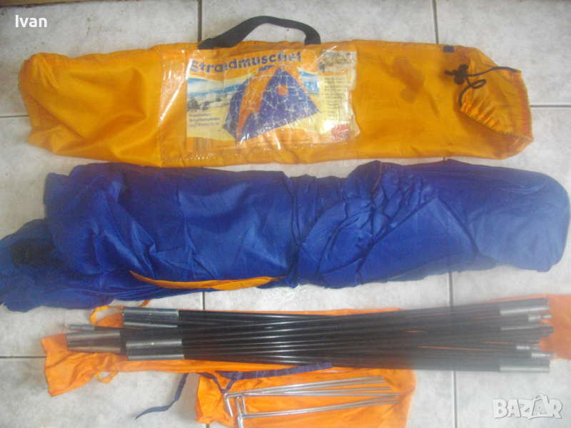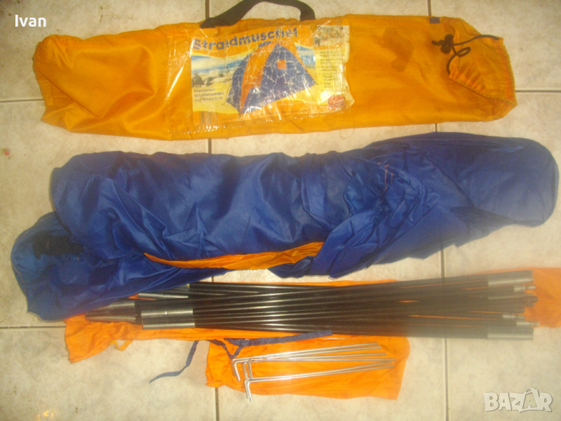 Немска Плажна Триместна Палатка-270х110х120см-Голяма-Почти Нова-Отлична-Шушляк/Полиестер-Пълен К-т