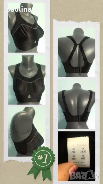 2. Колаж / Спортен / ортопедичен сутиен "Pure Lime" / 75E / рядка номерация. Цената е крайна 27,99лв. Спортен / ортопедичен сутиен, рядка номерация. Подходящ е за пост оперативни гръдни протезирания при млади дами за превенция на гръбначни изкривявания или спорт / фитнес. Нов, без етикет.
